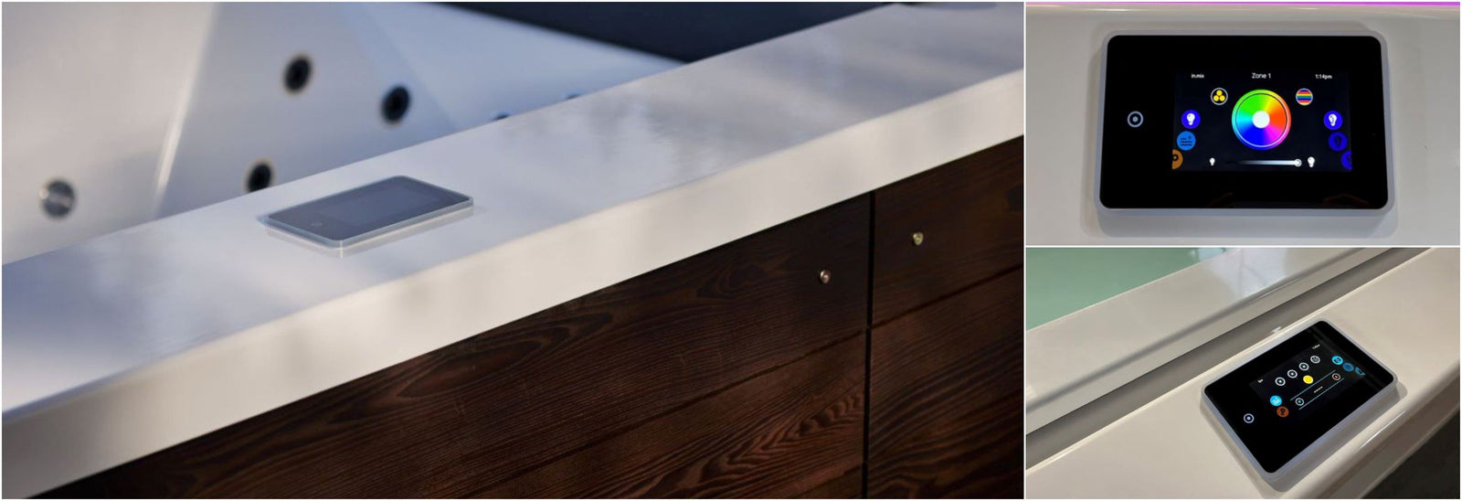 Aquatica’s exclusive selection of outdoor hot tubs and spa bathtubs provide the ultimate spa experience, thanks to a state-of-the-art capacitive touch screen keypad. The 4.3 inch screen with 256K LCD color is powered by a 400 MHz processor, and features lots of memory. Extremely durable, this weather-resistant keypad is perfect for all temperatures and weather conditions.