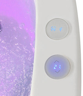 Two small keypads with a beautiful minimalist design deliver an upscale appeal and the ultimate bathing experience. One keypad features intuitive arrows, providing temperature control up to 40° (104F), while the second keypad with two buttons allows you to easily control chromotherapy LED lighting and water circulation.