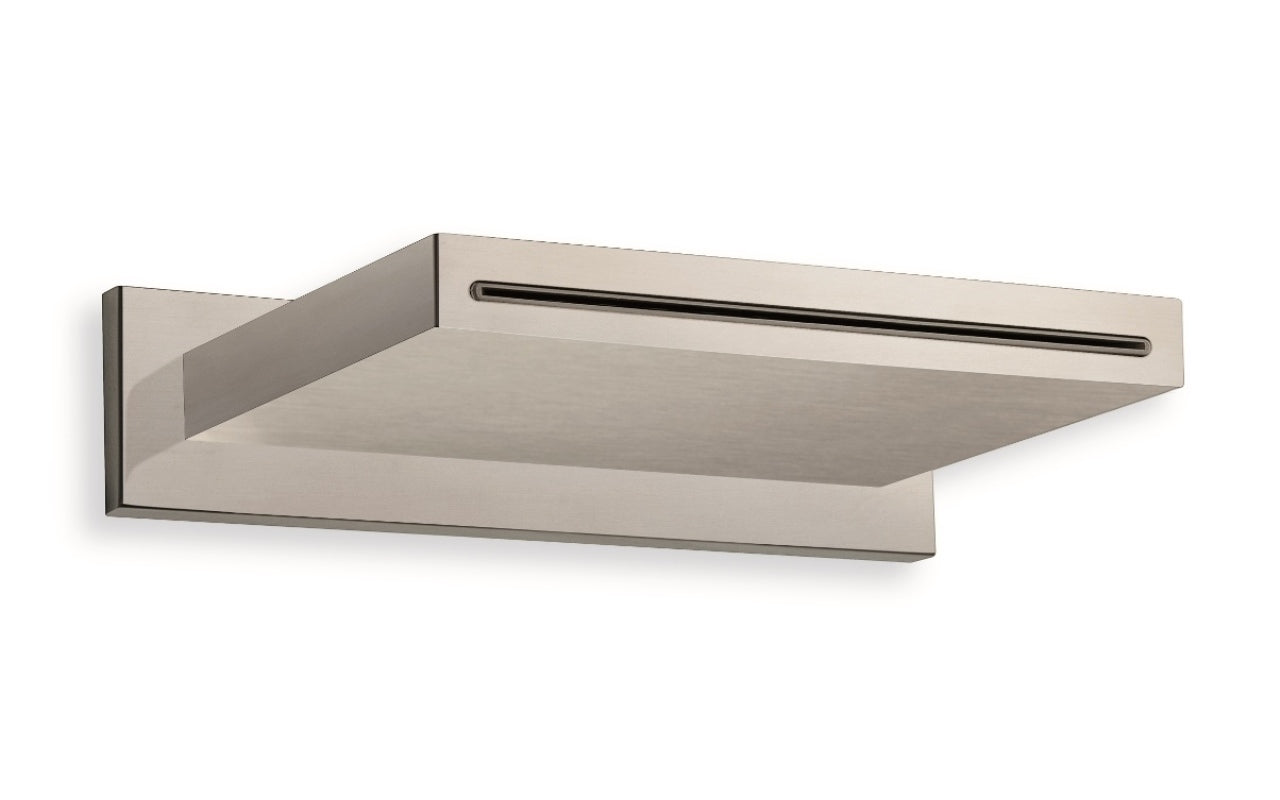 The Spring RC-235/140 Waterfall Shower is designed to deliver a sheet-style water flow from a compact rectangular format. Its mirror stainless steel finish contributes to a clean, reflective surface that aligns with contemporary bathroom designs.