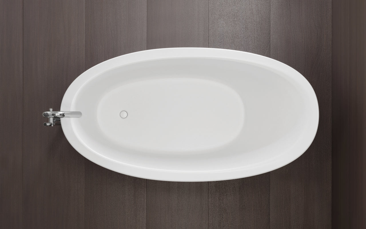 It is inspired by the classic Victorian slipper tub, reinterpreted with a modern, streamlined profile.