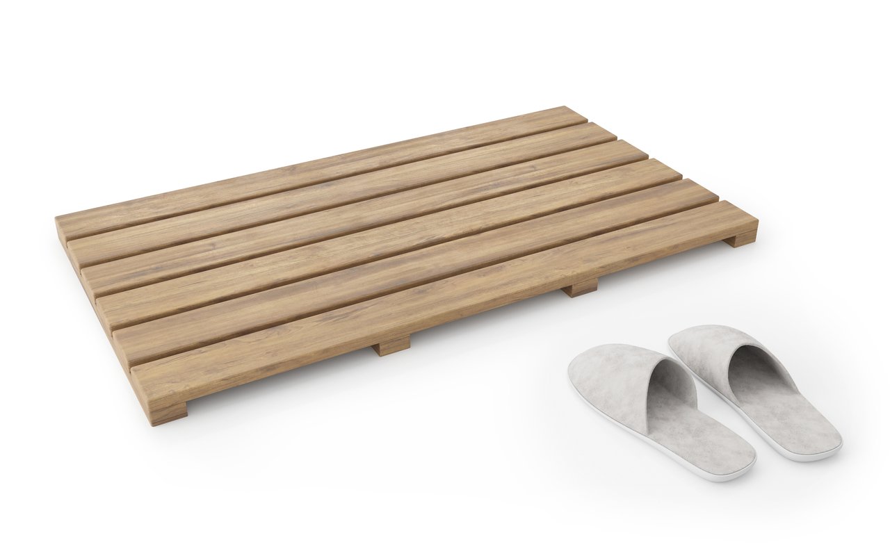 Its waterproof construction makes it suitable for wet areas, while the teak appearance complements natural and spa-inspired bathroom interiors.