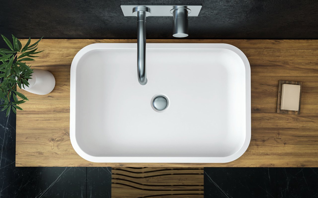 Solace-A White Rectangular Stone Vessel Sink Overview
