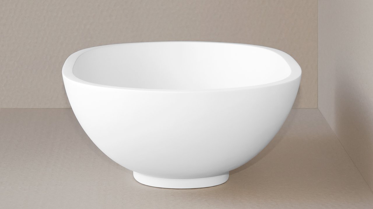 At 23.6" (600 mm) wide, this vessel sink is well-proportioned for both single and double vanity applications, bringing understated luxury while elevating the environment from functional to artistic. Crafted from AquateX™ solid surface, it offers a velvety-smooth touch and exceptional durability for years of use.