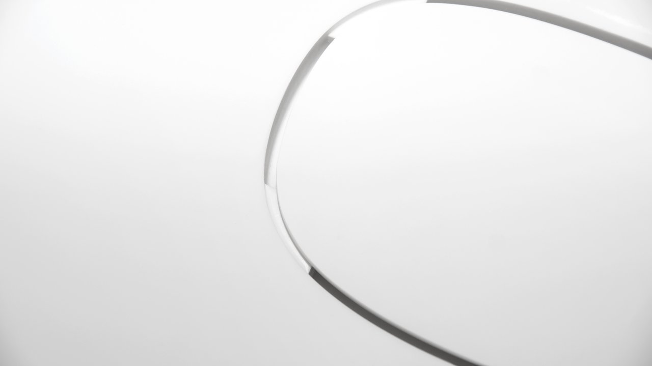 It is described as featuring a perfectly balanced oval silhouette, a flattened rim, soft curvature, and flawless symmetry to create a sense of balance and serenity.