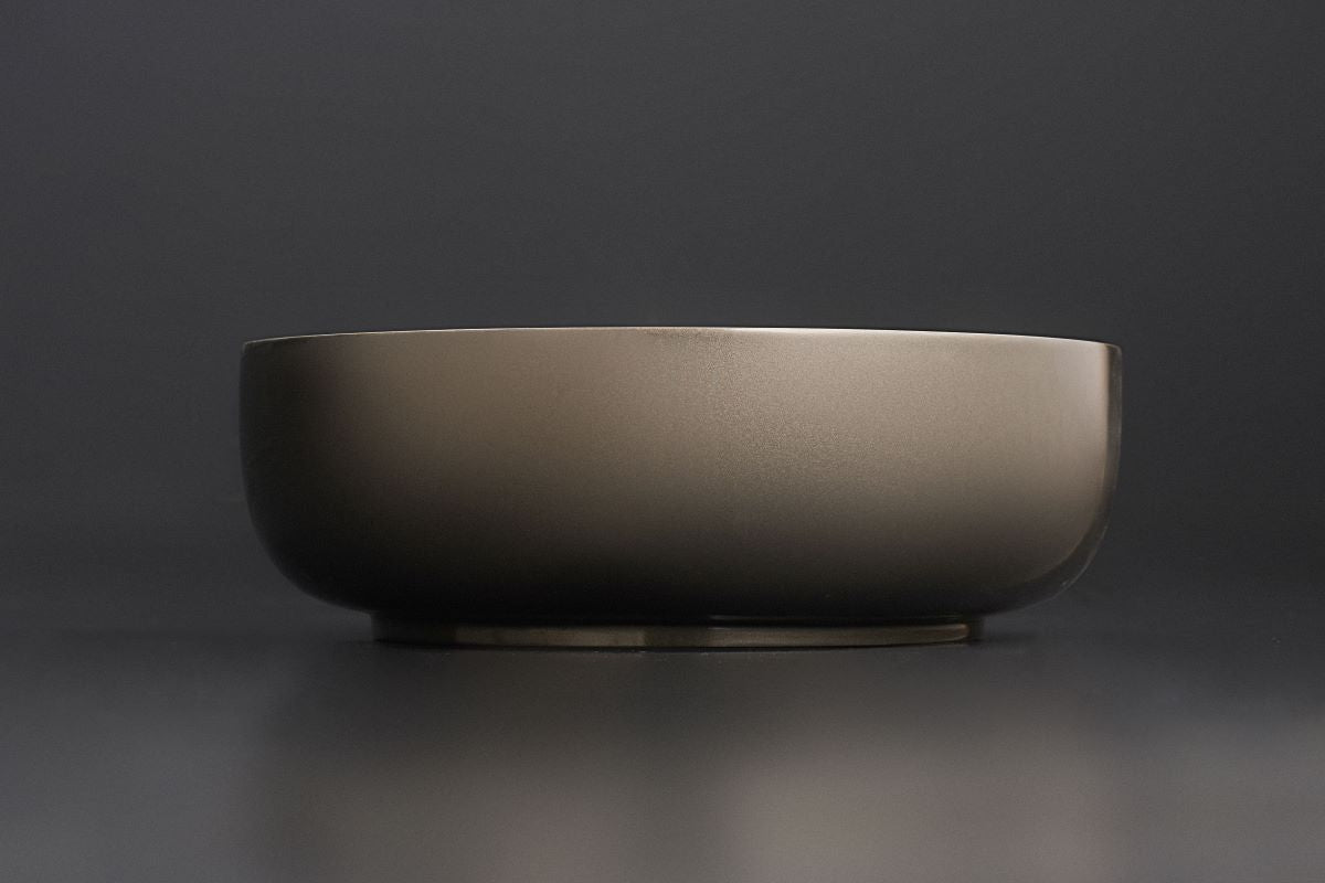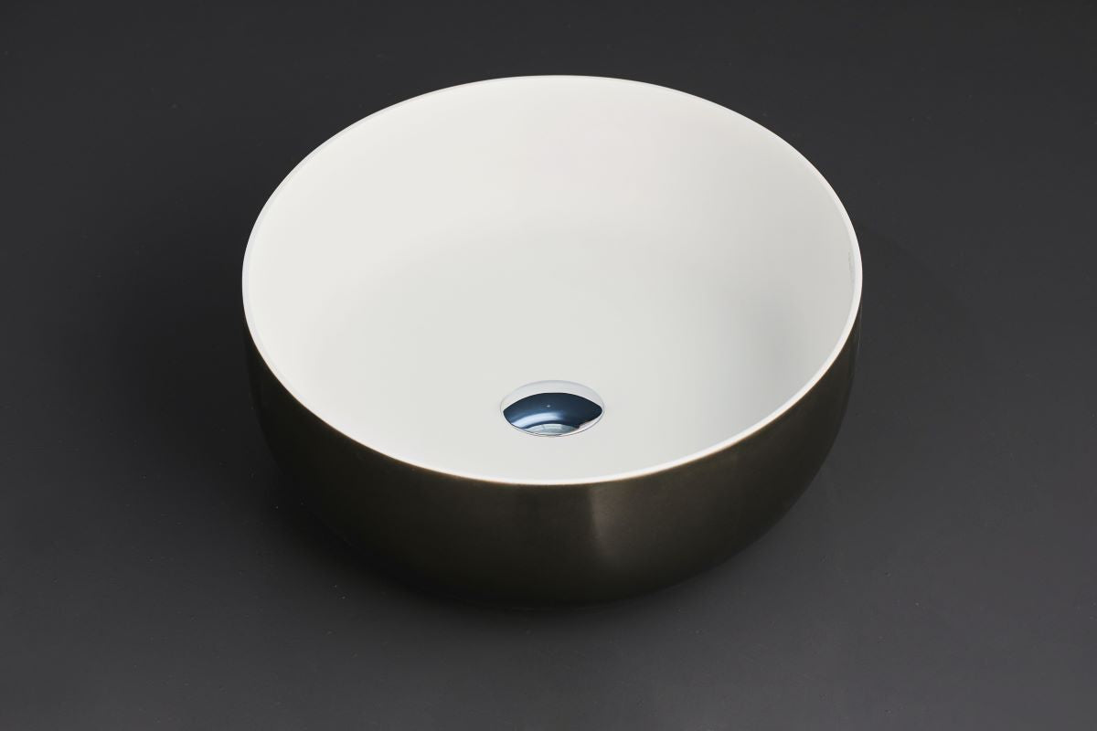 The Aurora Gunmetal-Wht Supergloss R St Vessel Sink expresses elegant simplicity through a balanced round form inspired by nature’s most refined shapes. Its harmonious symmetry and calm profile are designed to enhance the ambience of a luxury bathroom.
