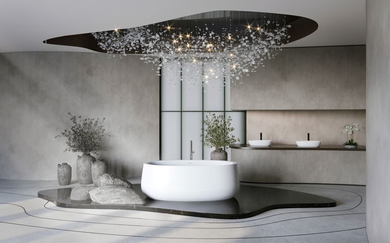 The Leah Wht Freestanding Solid Surface Bathtub is inspired by the gentle curves of a silk cocoon, expressing soft natural elegance in a contemporary form. Its organic silhouette is designed to bring warmth, calm, and balance to the bath environment.