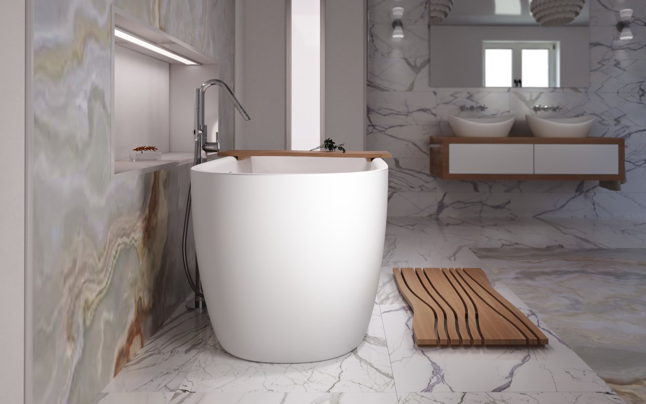 - Freestanding solid surface bathtub inspired by Scandinavian design