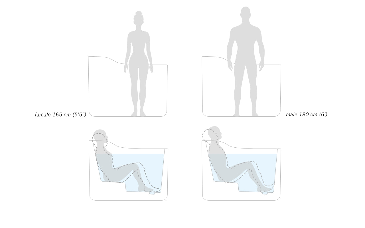 This bathtub is designed for upright, deep soaking in the traditional ofuro style, emphasizing immersion and relaxation rather than reclined bathing.
