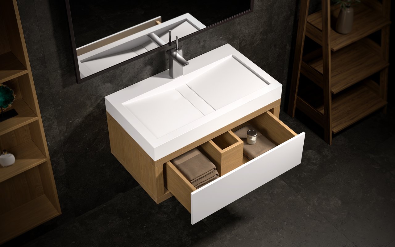 The Millennium-90 White Stone Sink is designed as a refined countertop basin that brings clarity and balance to contemporary bathroom interiors. Its elongated 90 cm format offers a generous washing area while maintaining clean proportions that suit modern vanity layouts.