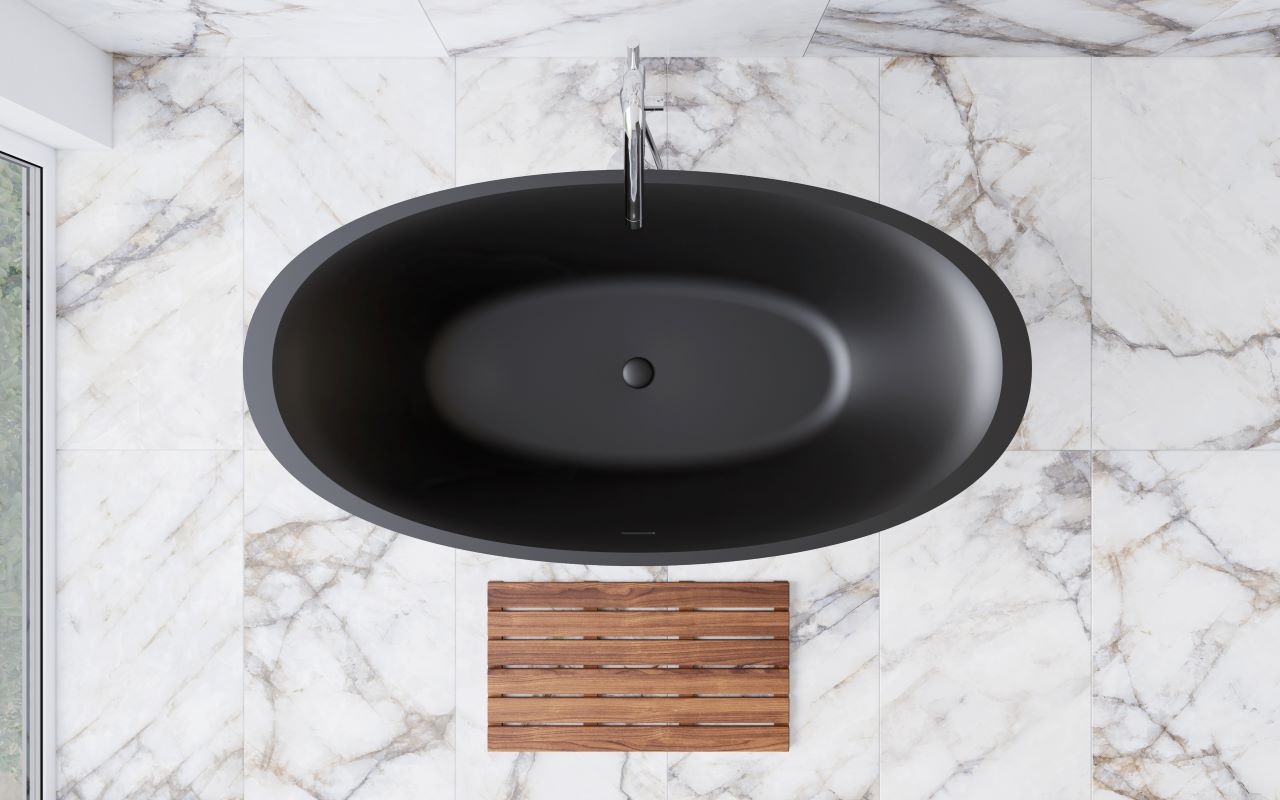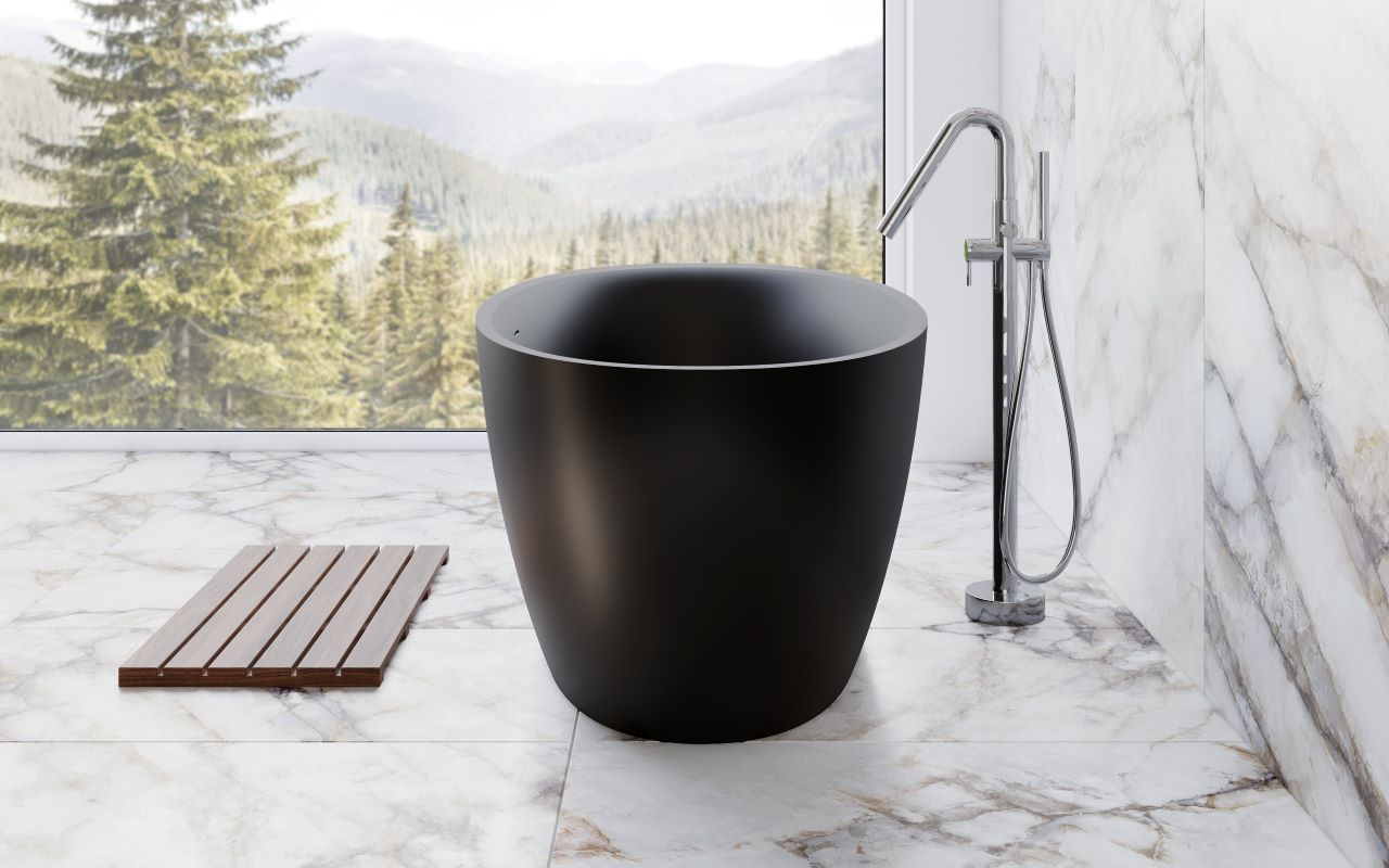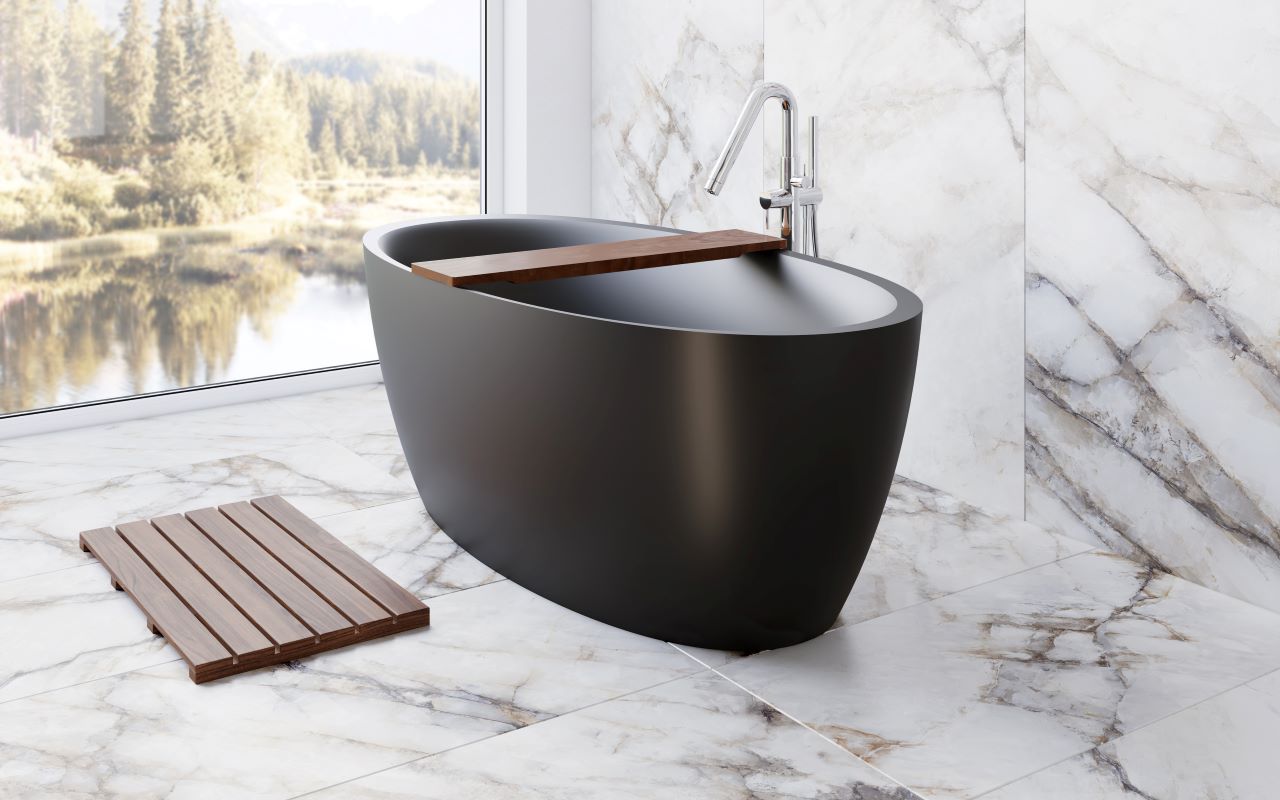 - Freestanding solid surface bathtub inspired by Scandinavian design
