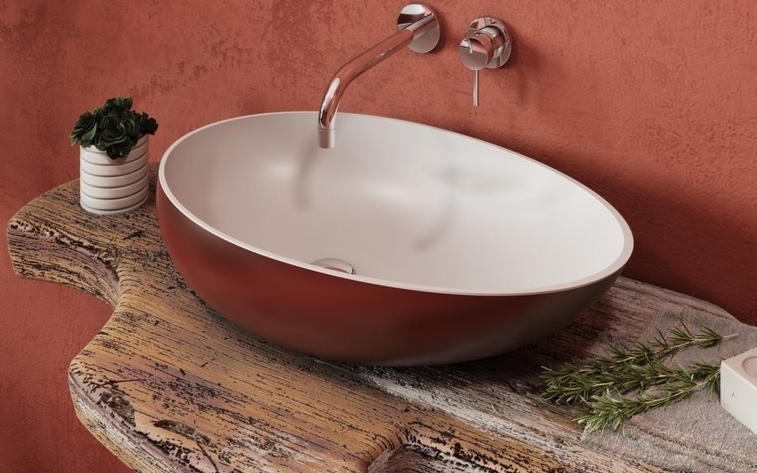 Aquatica Spoon-2 Oxide Red-Wht Stone Bathroom Vessel Sink